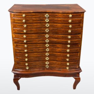 materiál: ořech, jasan, eben, mahagon, mosazné kování, plátno.