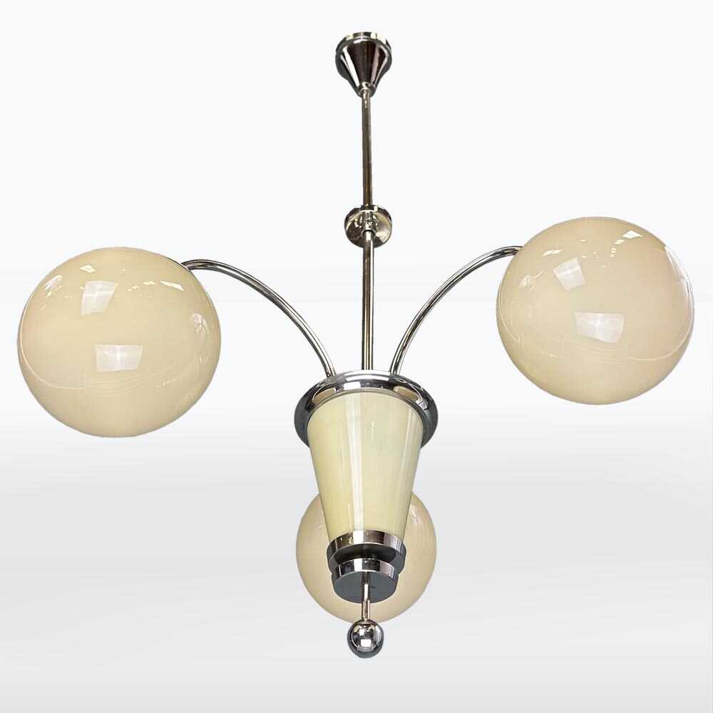 materiál: chromový kovová trubka, původní skleněná stínidla.
