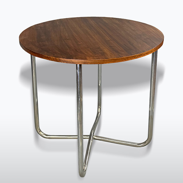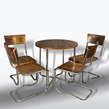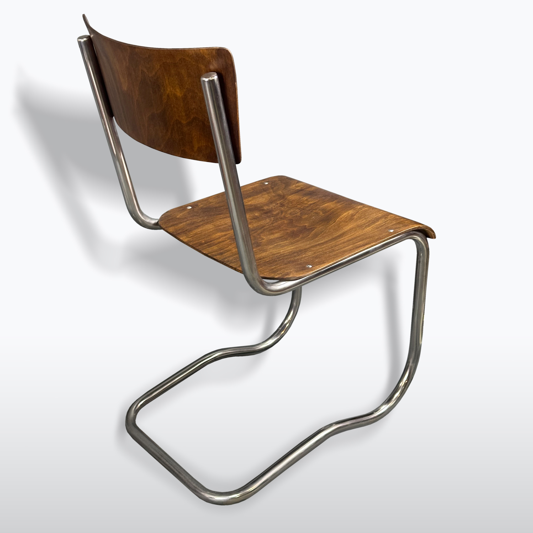 materiál: ohýbaná chromovaná trubka, lakovaná bukový překližka.