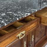 materiál: masiv v kombinaci s ořechovou dýhou, mosazné kování, mramorová deska.