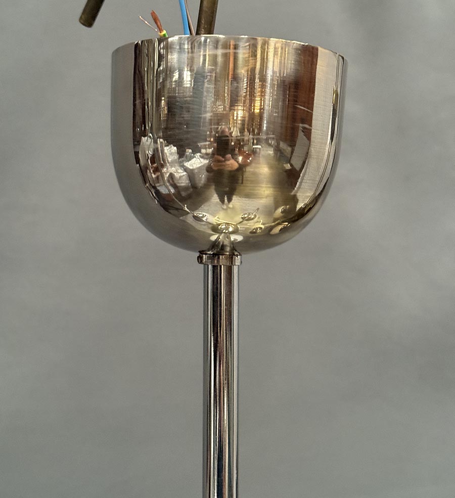 Lustr prošel odbornou renovací — elektroinstalace je nová, chromovaná konstruke vyčištěna a vyleštěna. Lustr je tedy plně připraven k okamžité instalaci.