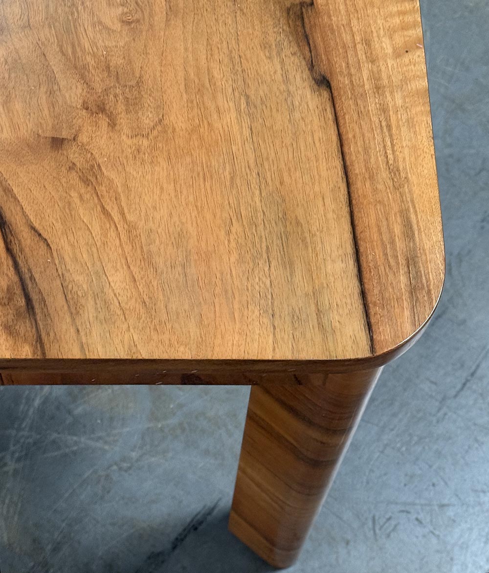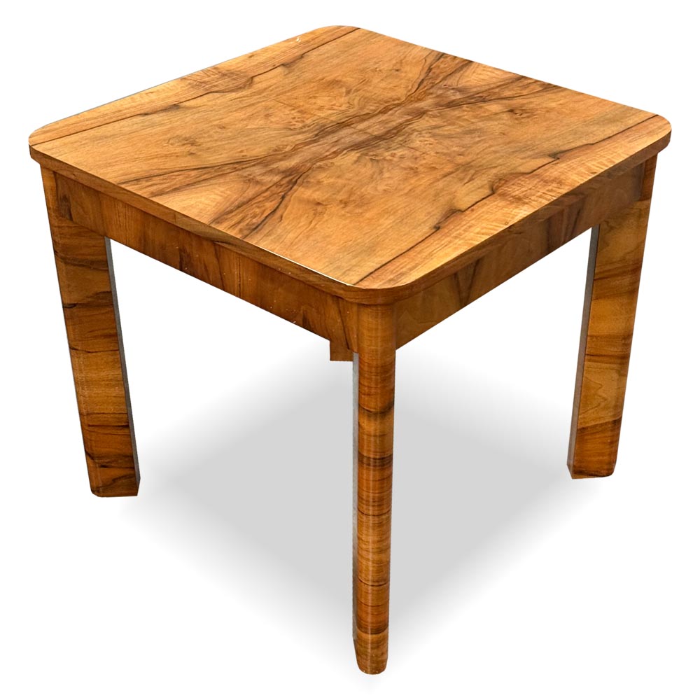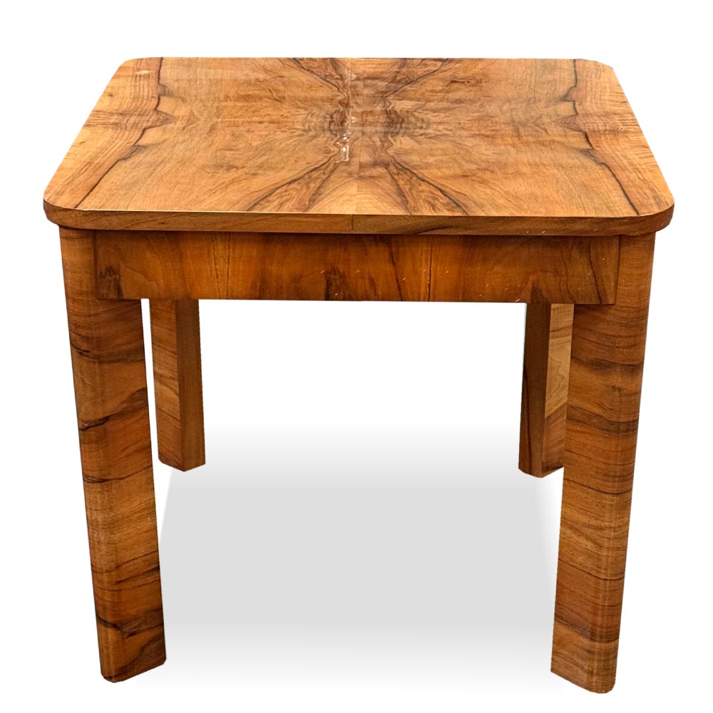 Konferenční stolek z období Art-Deco zaujme výraznou kresbou ořechové dýhy, která na horní desce vytváří efektní zrcadlení let.