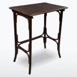 Stolek od světoznámé značky Thonet, vyrobený v první třetině 20. století. Proporčně vyvážený tvar a dekorativní spodní výztuhy dodávají stolku jemný secesní až raně modernistický výraz. Stolek je po odborném ošetření, stabilní a připravený k okamžitému použití.