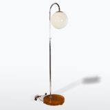 materiál: chromová konstrukce, ořechový masiv, opálové stínidlo.