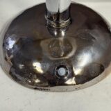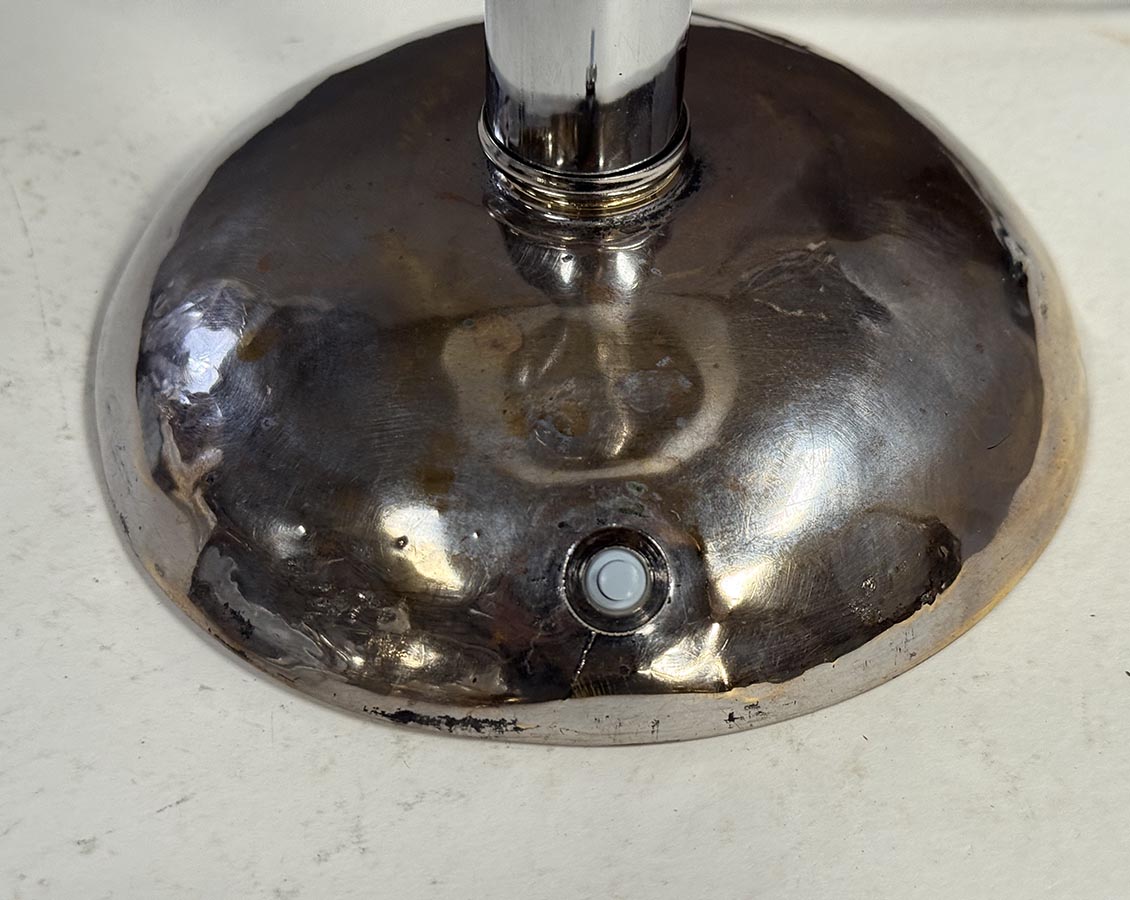 Materiál: chromovaný kov, původní kovový podstavec, pískované sklo se linkami